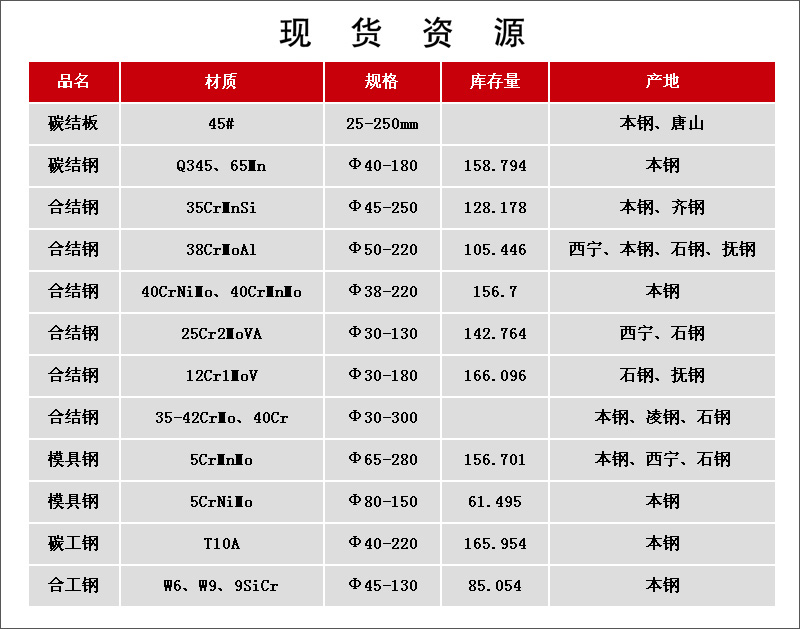 产地:石钢、本钢特钢、西宁特钢、抚钢